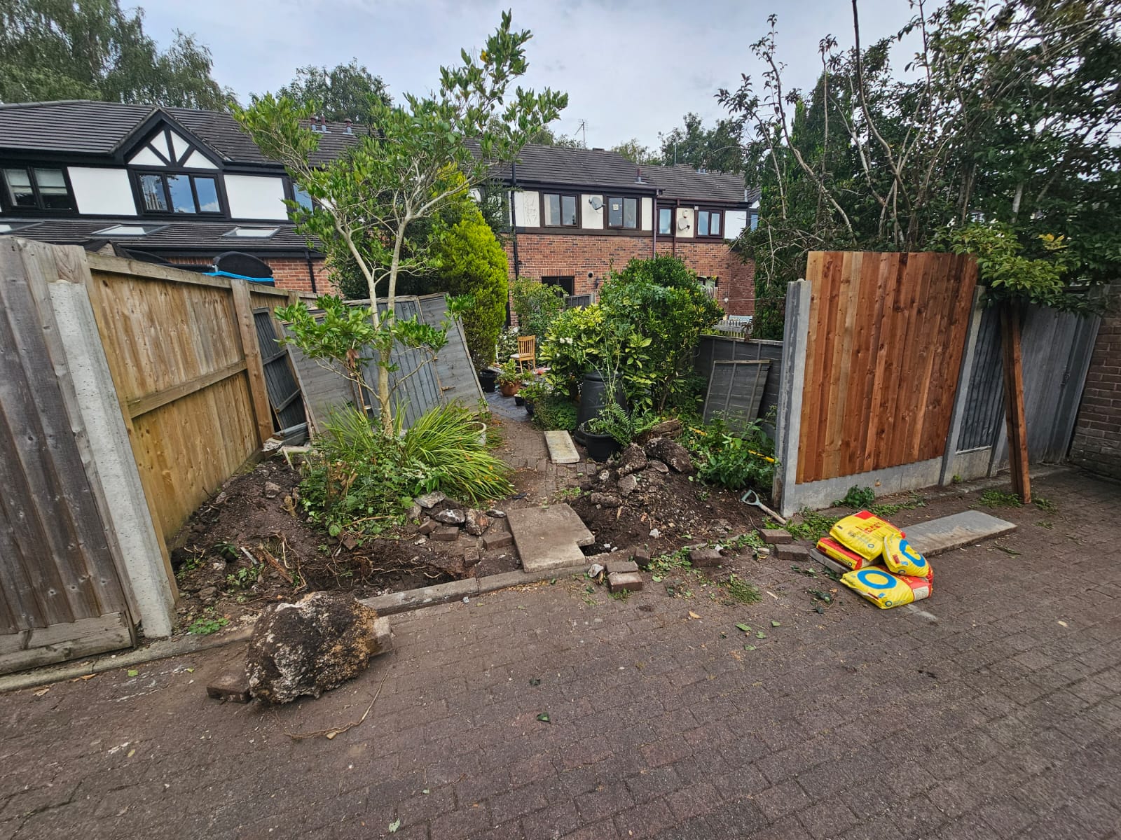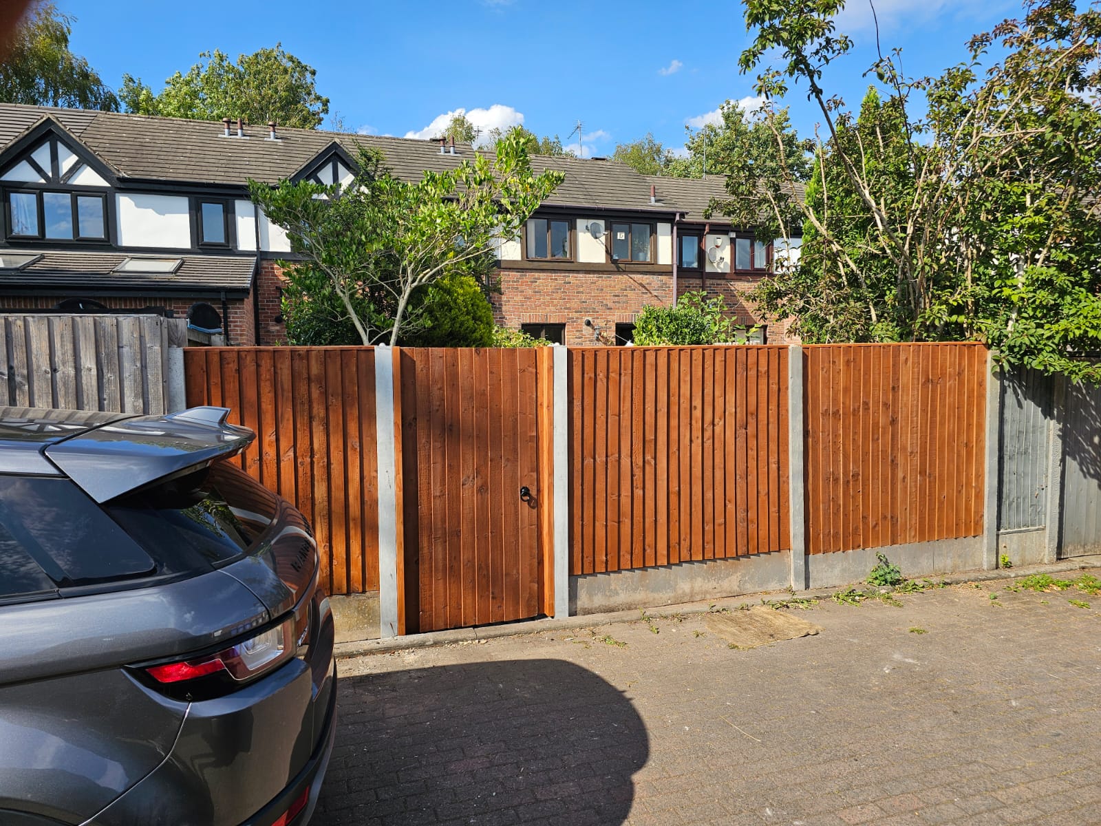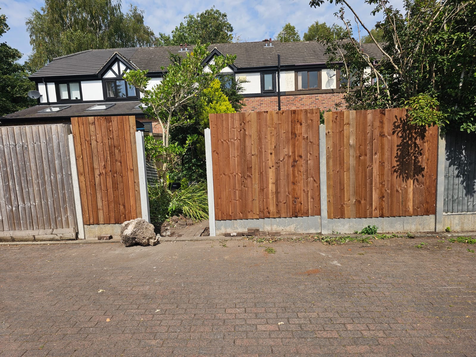 The old fence panels were very outdated, cracked and some of them were falling apart, hence why our client has asked us to change the fence panels, and make them look modern and stylish by placing them sided. Some concrete posts were seriously cracked which caused the fences to start sinking and moving out of their place.