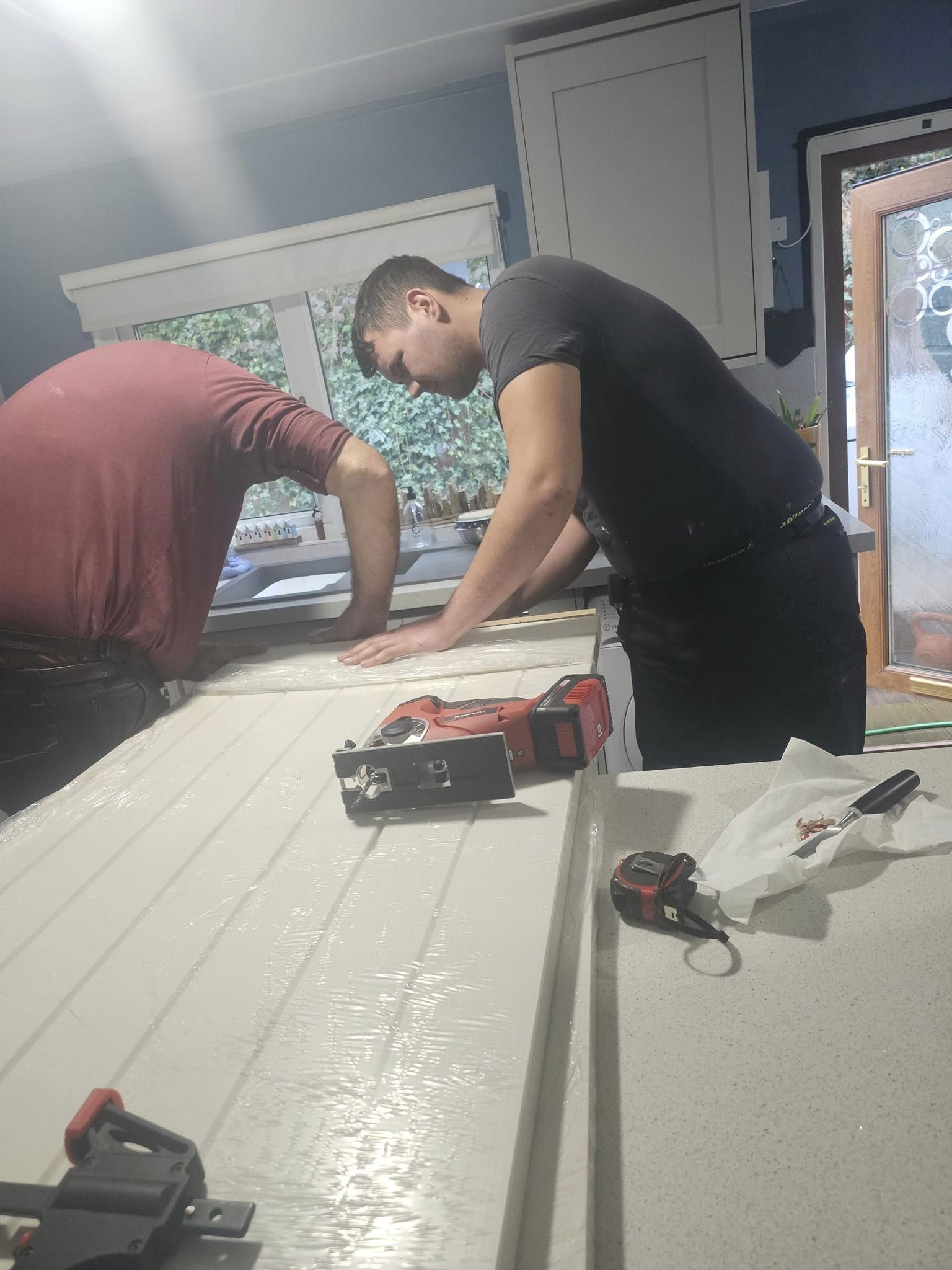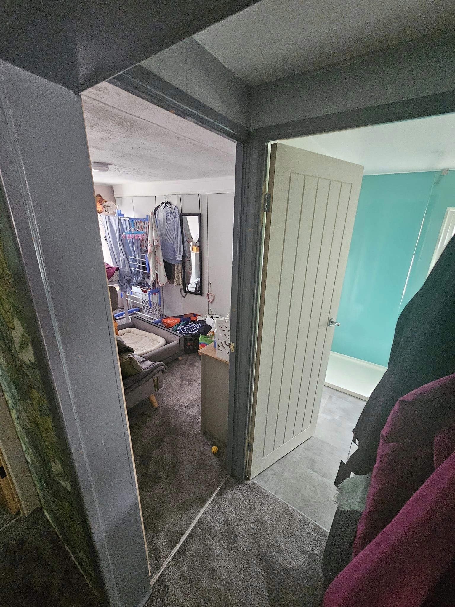 Door frame painting, door painting and hanging, new handles fitted.